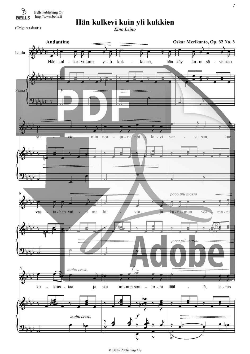 Merikanto, Oskar: Hän kulkevi kuin yli kukkien, Op. 32 Nr. 3
