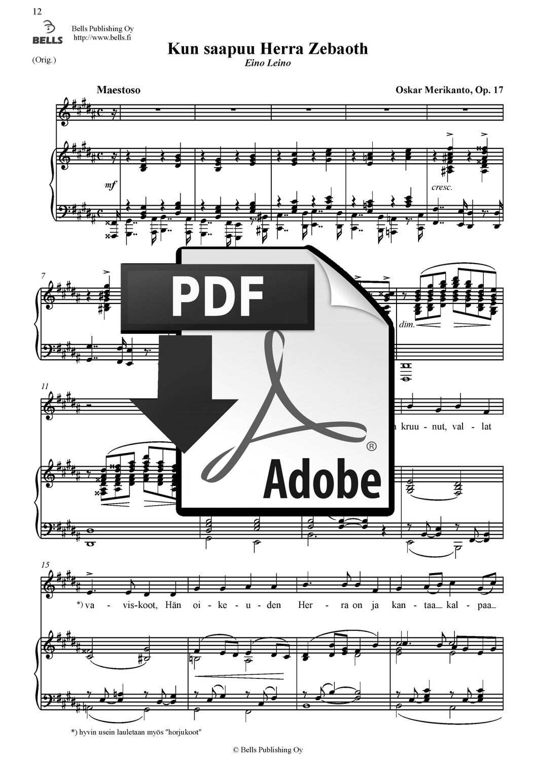 Merikanto, Oskar: Kun saapuu Herra Zebaoth, Op. 17