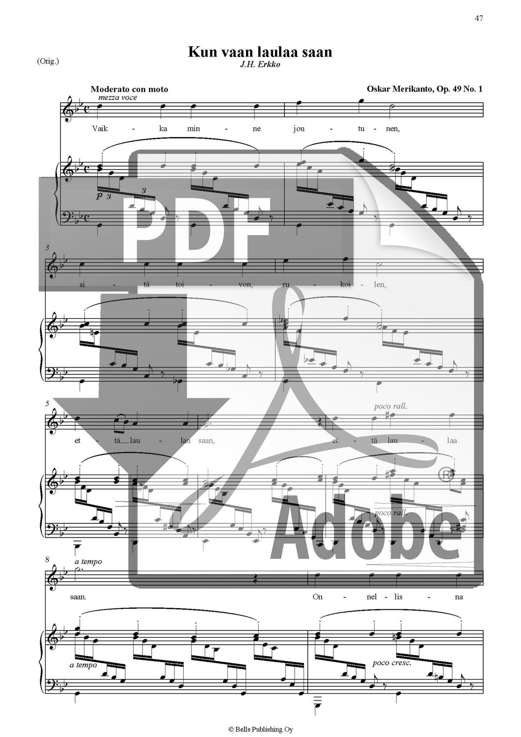 Merikanto, Oskar: Kun vaan laulaa saan, Op. 49 Nr. 1