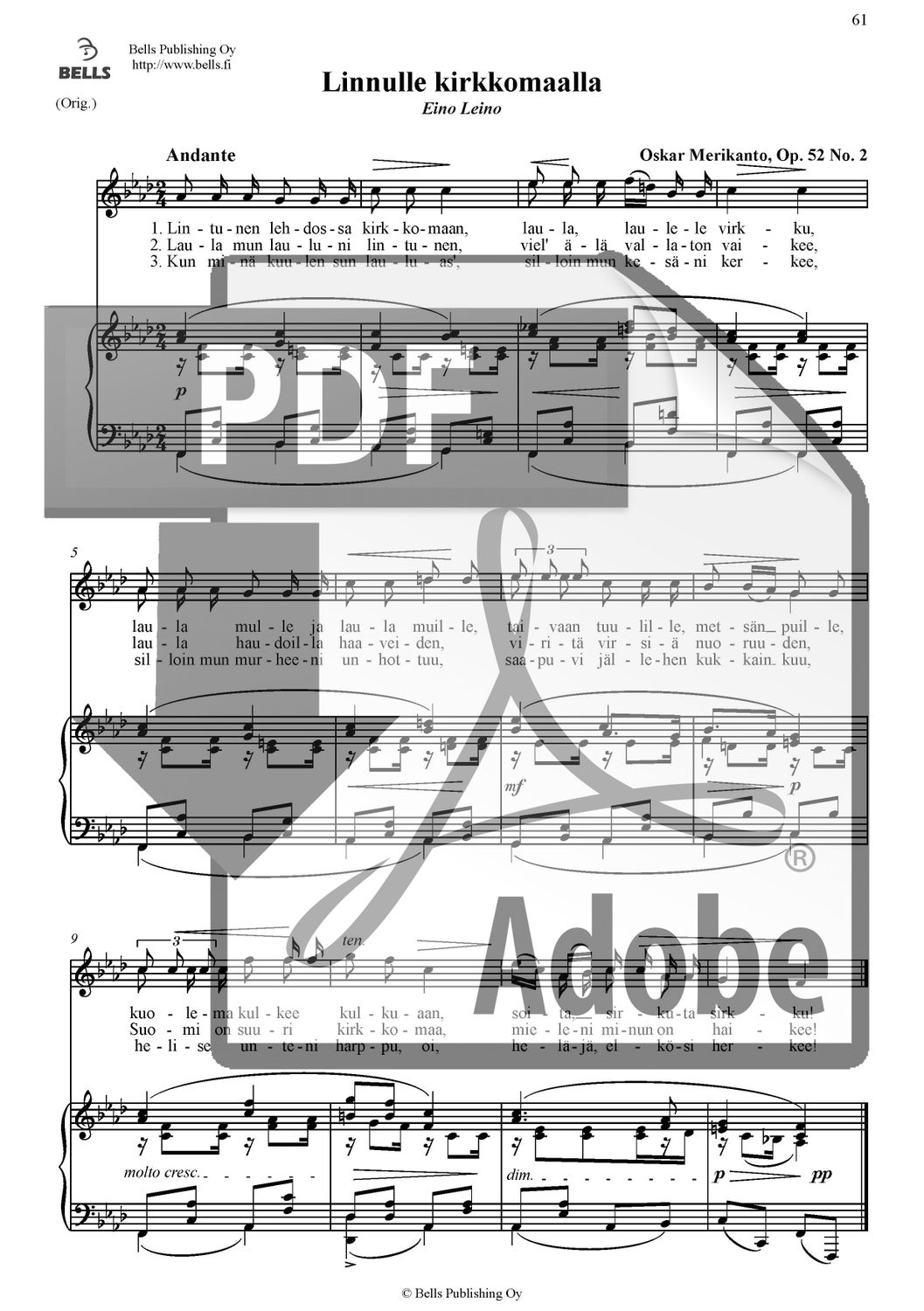 Merikanto, Oskar: Kiitos sulle, Jumalani (Singstimme und Klavier)