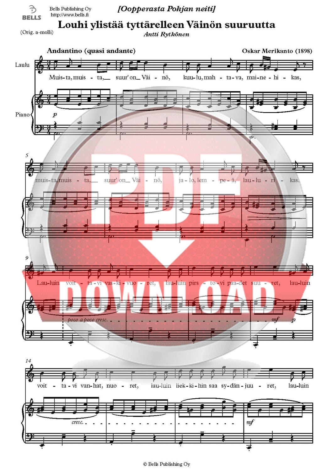 Merikanto, Oskar: Louhi ylistää tyttärelleen Väinön suuruutta