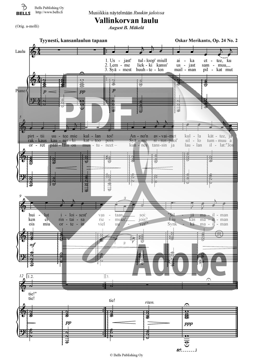 Merikanto, Oskar: Vallinkorvan laulu, Op. 24 Nr. 2