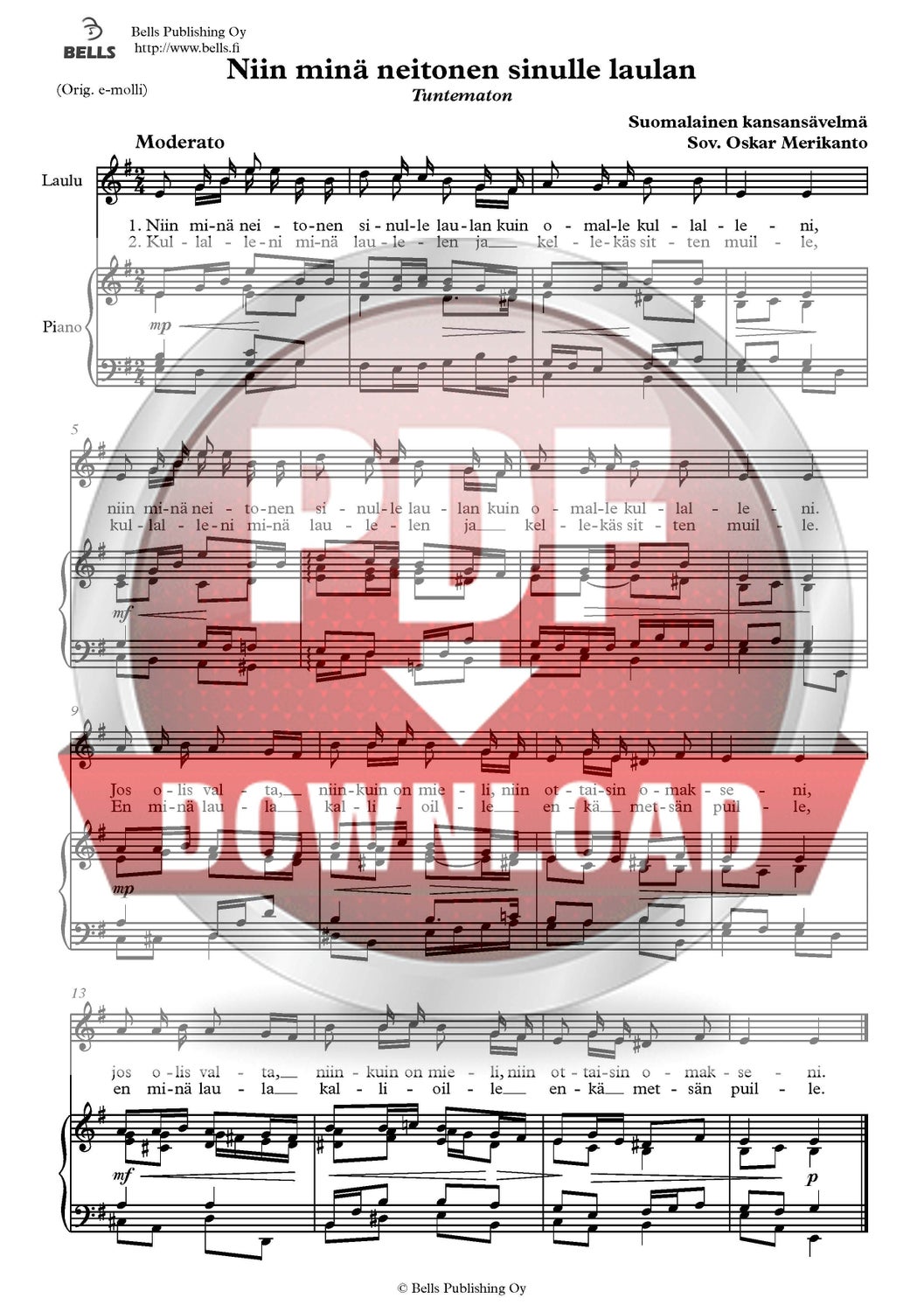 Trad. (Arr. Oskar Merikanto): Niin minä neitonen sinulle laulan